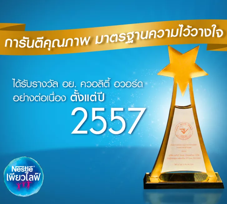 รางวัลและใบรับรองที่ได้รับเป็นเครื่องรับประกันว่าน้ำดื่มเนสท์เล่ เพียวไลฟ์เป็นสถานประกอบการอาหารที่มีคุณธรรมในการผลิตผลิตภัณฑ์คุณภาพ ปลอดภัย และรับผิดชอบต่อผู้บริโภคและสังคม