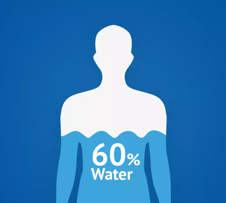 ร่างกายผู้ใหญ่ประกอบด้วยน้ำประมาณ 60% ของน้ำหนักตัว